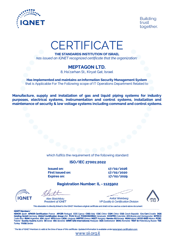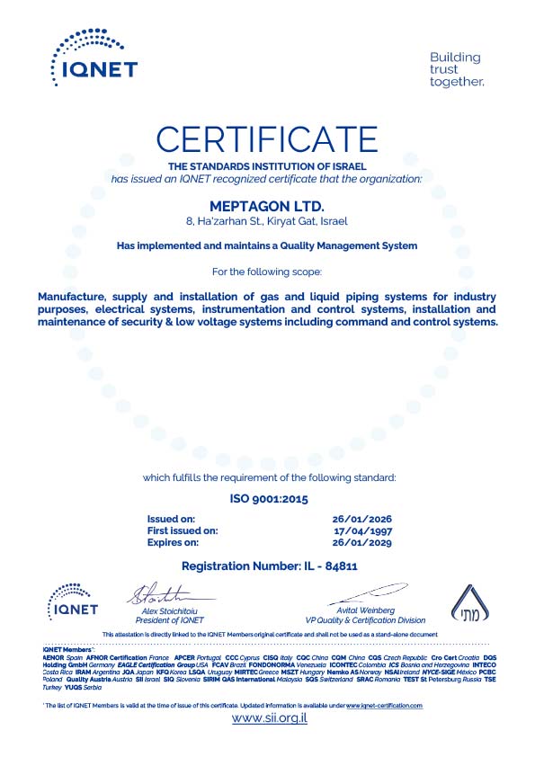 Meptagon sees the implementation of our quality principles as a crucial method to achieve customer satisfaction. We are committed to providing a service which will meet our customer’s expectations, through a continual process of reviewing their requirements and evaluating their satisfaction with our performance. We constantly seek to improve the quality of the services and products we provide, in accordance with the customer’s needs and changing market requirements, all the while complying with the relevant safety laws and regulations.